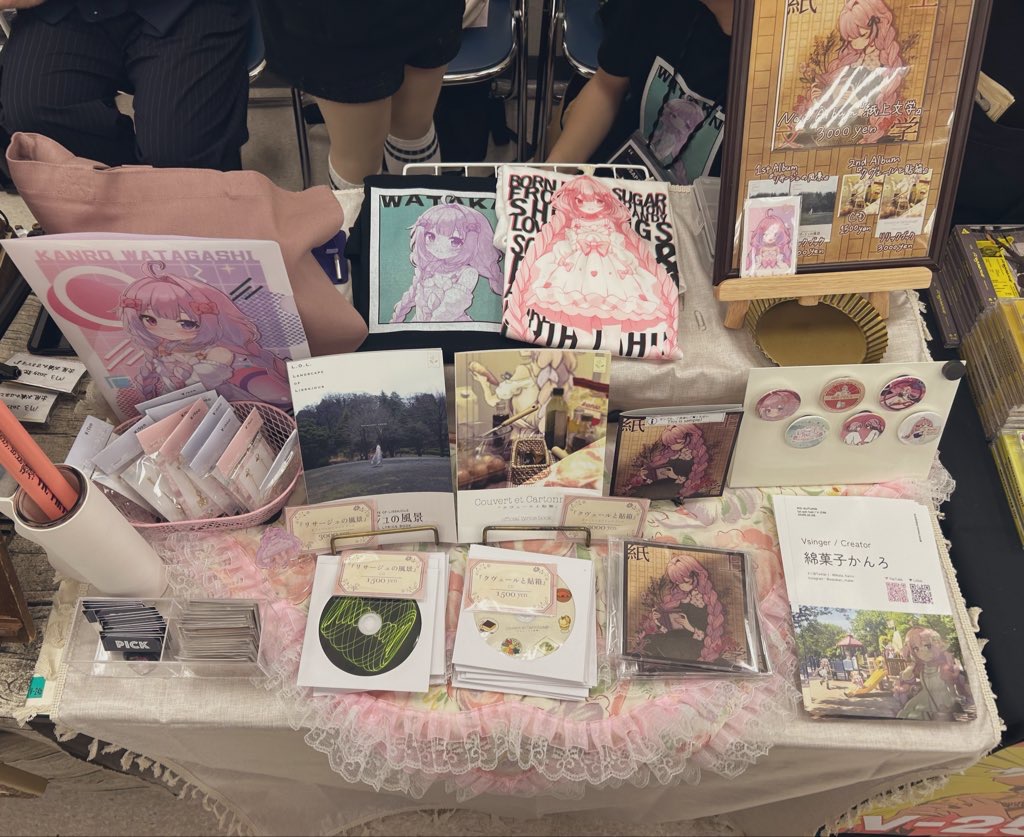 来てくれた方々、ありがとうございました。わたがし屋のみなさま…あたたかくてやさしくて、感動しかありません😭 売り子の四葩さん(サンフェや空想等担当してくださったイラストレーター)、UsaPan君(動画/写真屋さん そして会計のお手伝い人)、にも頭が上がりません。彼女らがいなければ回ってませんでした。 のちのち聞いたことではあるけれど、どなたが〇〇の差し入れをくれたよー! とか、△△さんがKAZA音(以前のリアイベ)以来また来てくれたよ!とか、嬉しい話をたくさん聞いた!みんなの愛を感じます、ありがとう.ᐟ.ᐟ✿ܓ